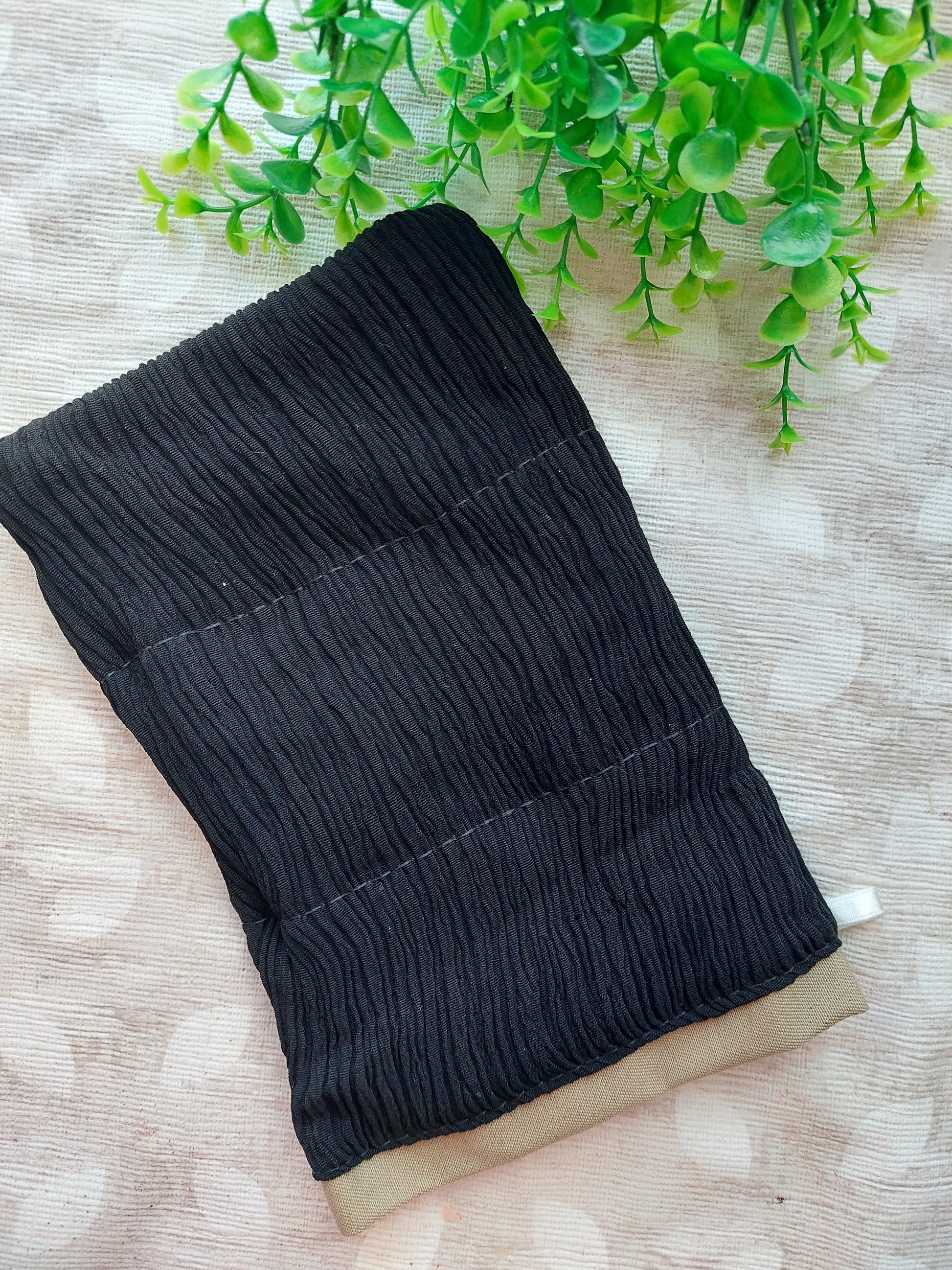 An exfoliating body mitt is a textured, abrasive glove designed to help remove dead skin cells, unclog pores, and improve skin texture. Made from natural fibers like sisal, loofah, the mitt is used in combination with body wash or scrub to gently massage the skin, promoting exfoliation. It enhances blood circulation and leaves the skin feeling smoother and revitalized after use. Regular exfoliation with a body mitt can contribute to healthier-looking skin by promoting cell turnover and removing impurities.