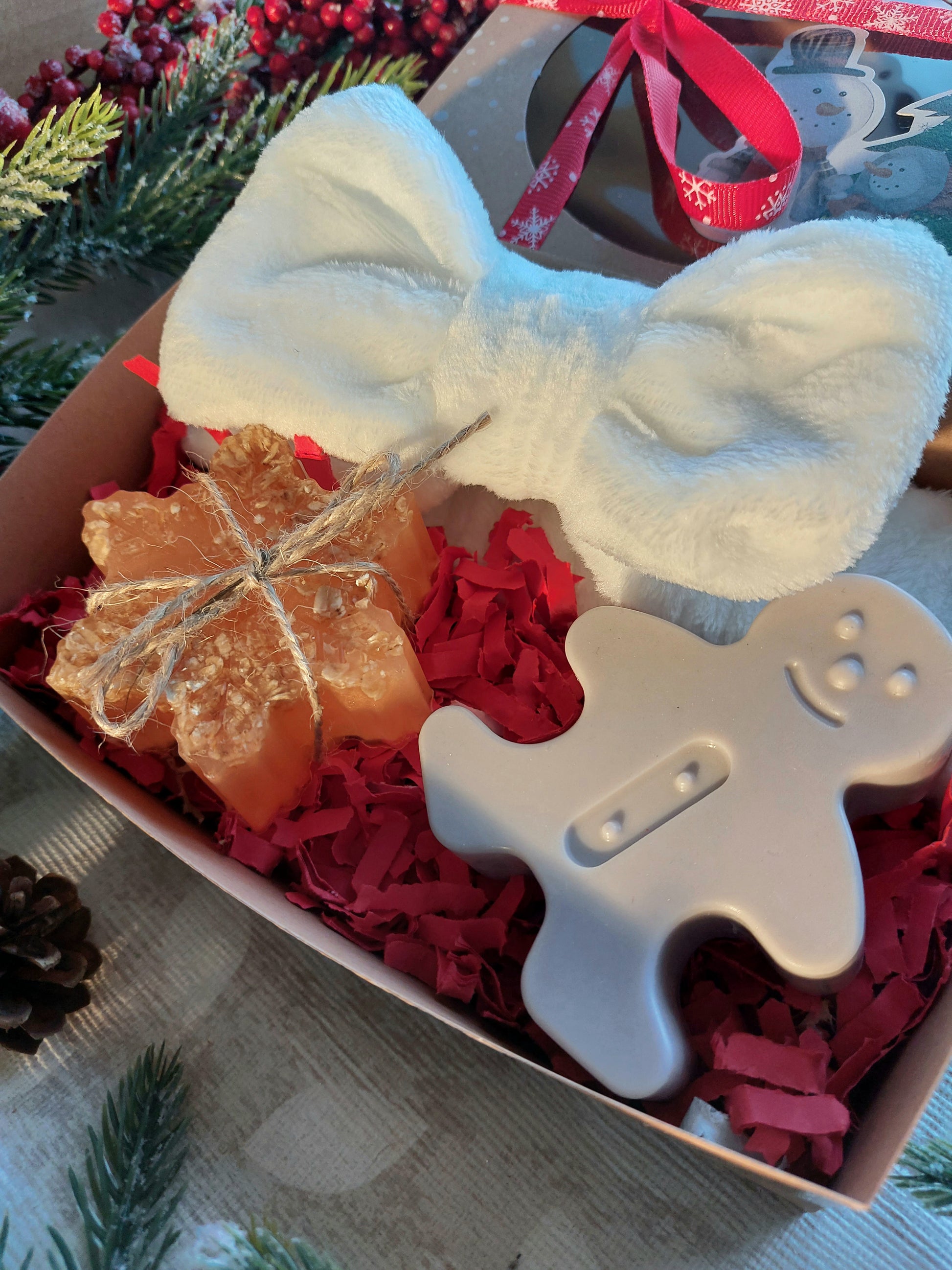 Accompanying the soaps is a plush, festive headband, perfect for adding a touch of charm to any holiday skincare routine.