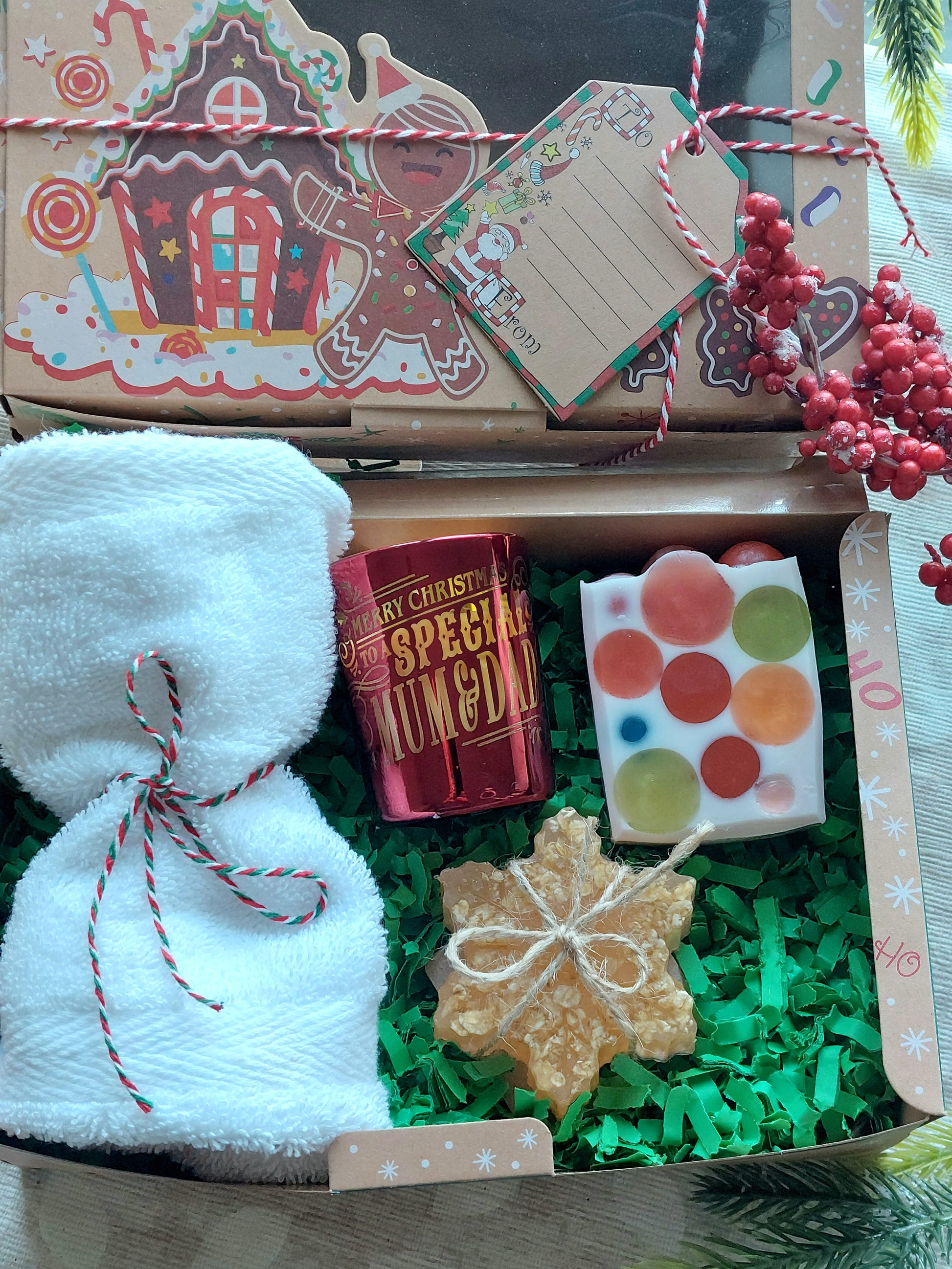 "Indulge in the essence of the holiday season with our specially curated Christmas gift set, designed to pamper your senses and rejuvenate your spirit. Inside our beautifully adorned special Christmas box, you'll find a selection of handcrafted delights crafted with care and infused with love.